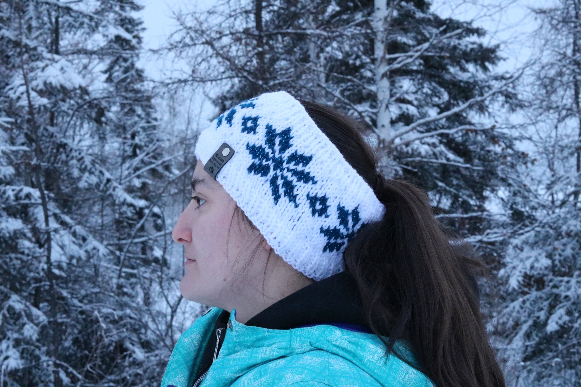 Show your love for winter with this Alyeska Snowflake headband, inspired by Alyeska Resort in Girdwood, Alaska. Designed to keep you warm and stylish, this two-tone colorwork knit headband features snowflakes on the outside and a warm, hand sewn fleece lining on the inside to ensure your ears stay cozy.