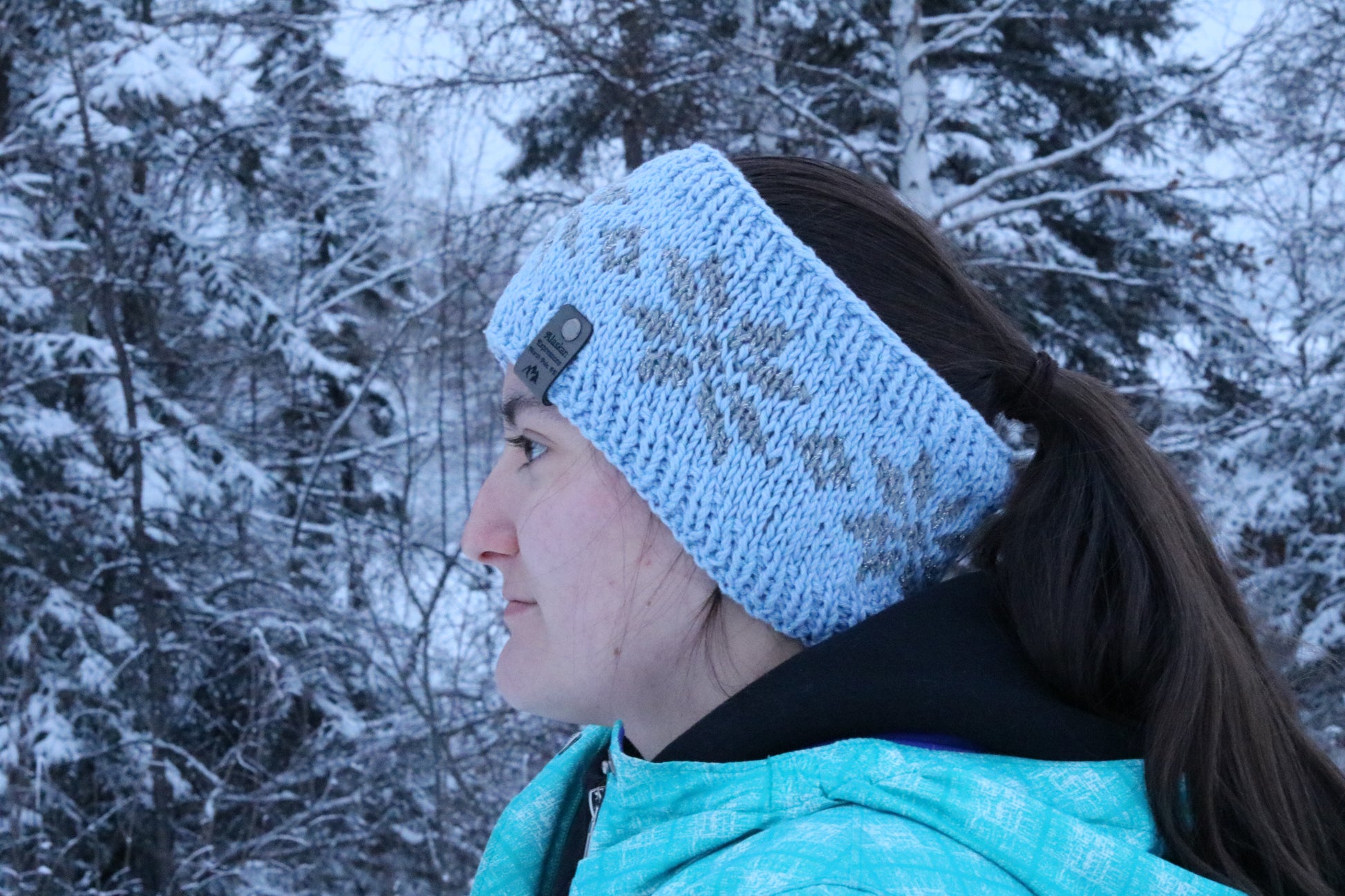 Show your love for winter with this Alyeska Snowflake headband, inspired by Alyeska Resort in Girdwood, Alaska. Designed to keep you warm and stylish, this two-tone colorwork knit headband features snowflakes on the outside and a warm, hand sewn fleece lining on the inside to ensure your ears stay cozy. This headband is a light blue shimmer with silver shimmer snowflake accents.