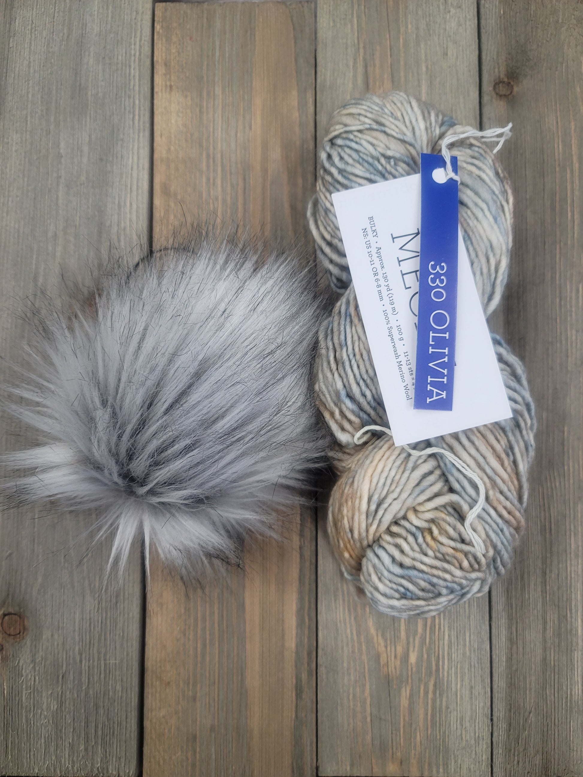 This is not a finished product. This is a project kit to make item pictured. This project kit includes yarn, pom-pom, and pattern to make the Aspen Ribbed hat using Malabrigo Mecha merino wool yarn.