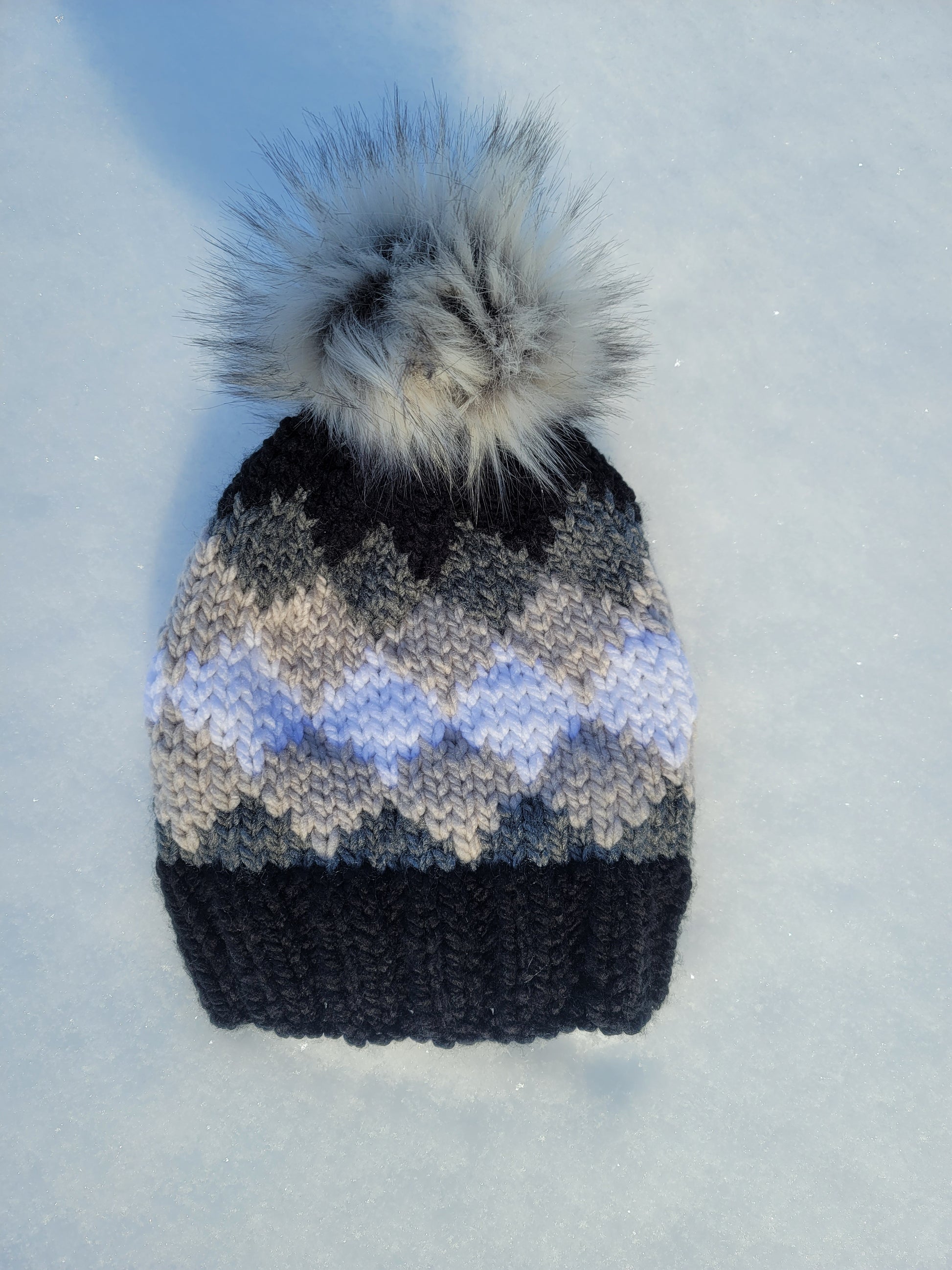 Pattern only not a physical item. This is a digital product for a knitting patten. My patterns are written for easy reading and easy to understand. (No complicated abbreviations!) All my patterns are also available on Ravelry. Alaska is home to 39 mountian ranges and Mt. Mckinley. Alaska is home to 17 out of 20 tallest peaks in the United States. This pattern calls for 8mm and 9.mm 16'' circular knitting needles, 9.mm dpn's, 35 yarns color A, 30 yards color B, 25 yards color C, and 15 yards color D of bulky yarn